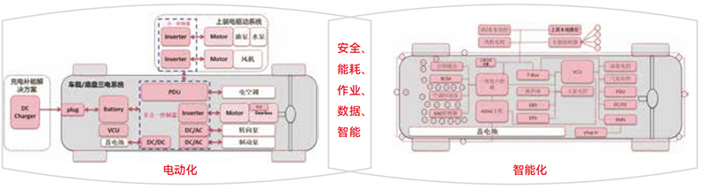 通過底盤與上裝的一體化設計,中控屏集成了車輛駕駛、上裝作業(yè)和多媒體娛樂等多功能,實現了“一屏多用”,簡化了架構,減少了60%的部件和線束,從而提高了性價比和可靠性